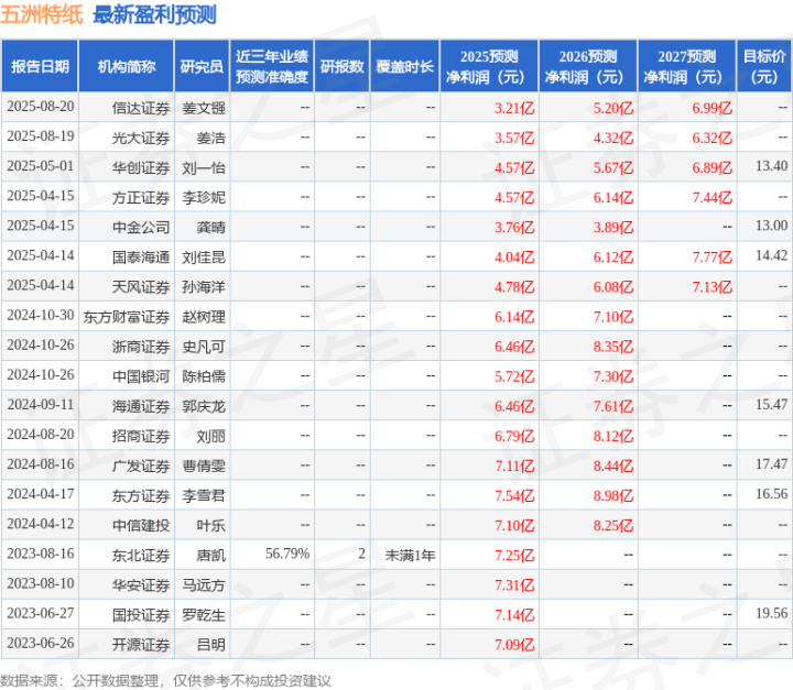 最新盈利预测明细如下: